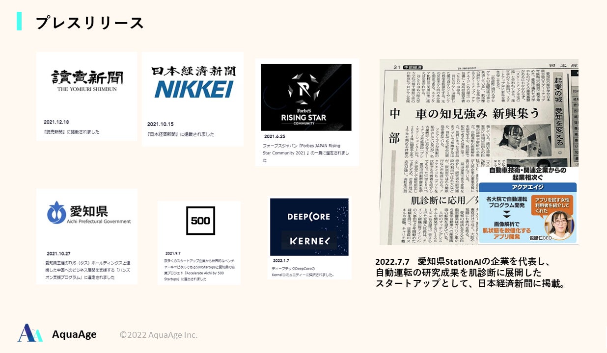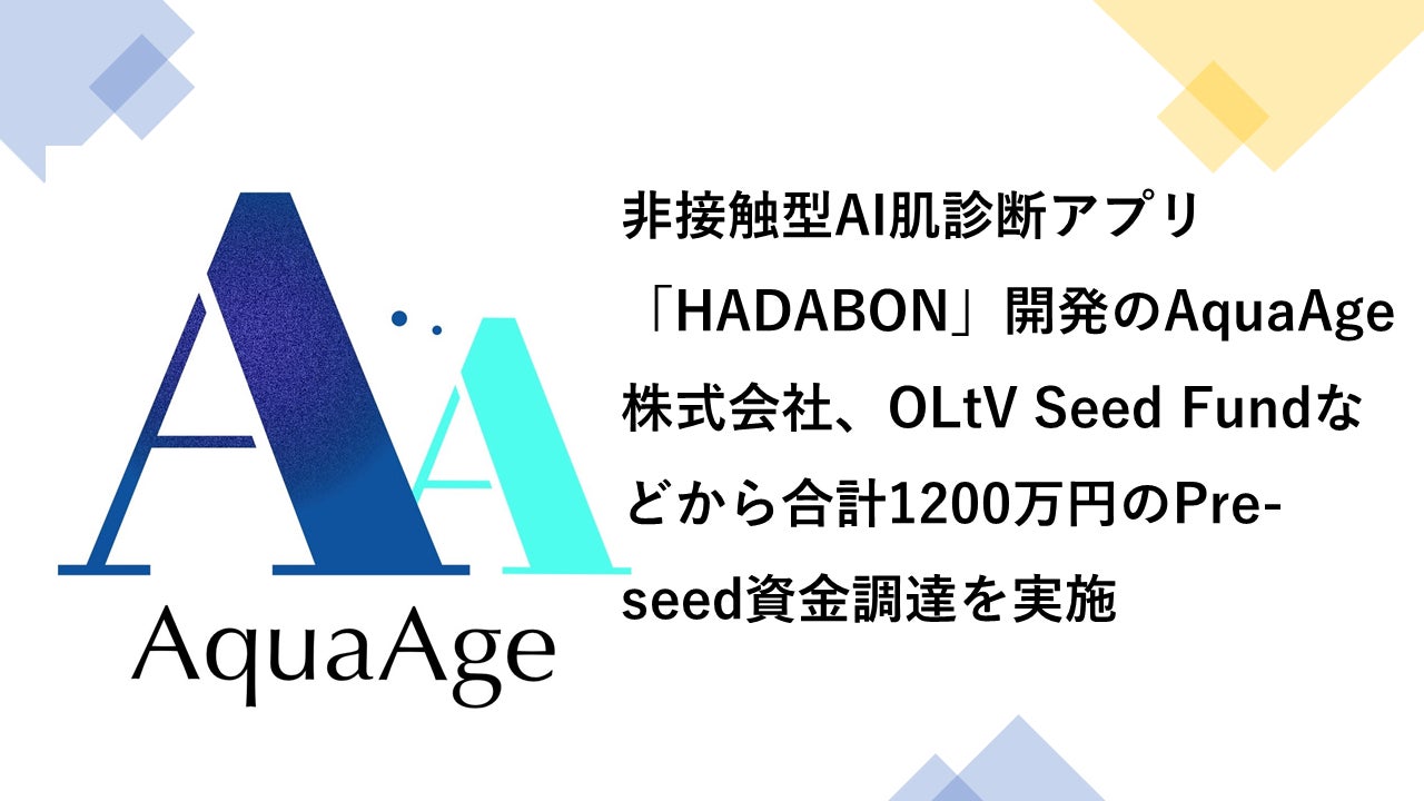 AquaAge株式会社(本社:愛知県名古屋市中村区、代表取締役社長CEO:包 娜仁、以下「AquaAge」)は、2022年7月、VC及びエンジェル投資家よりPre-seedラウンドを合計1200万円調達いたしました。