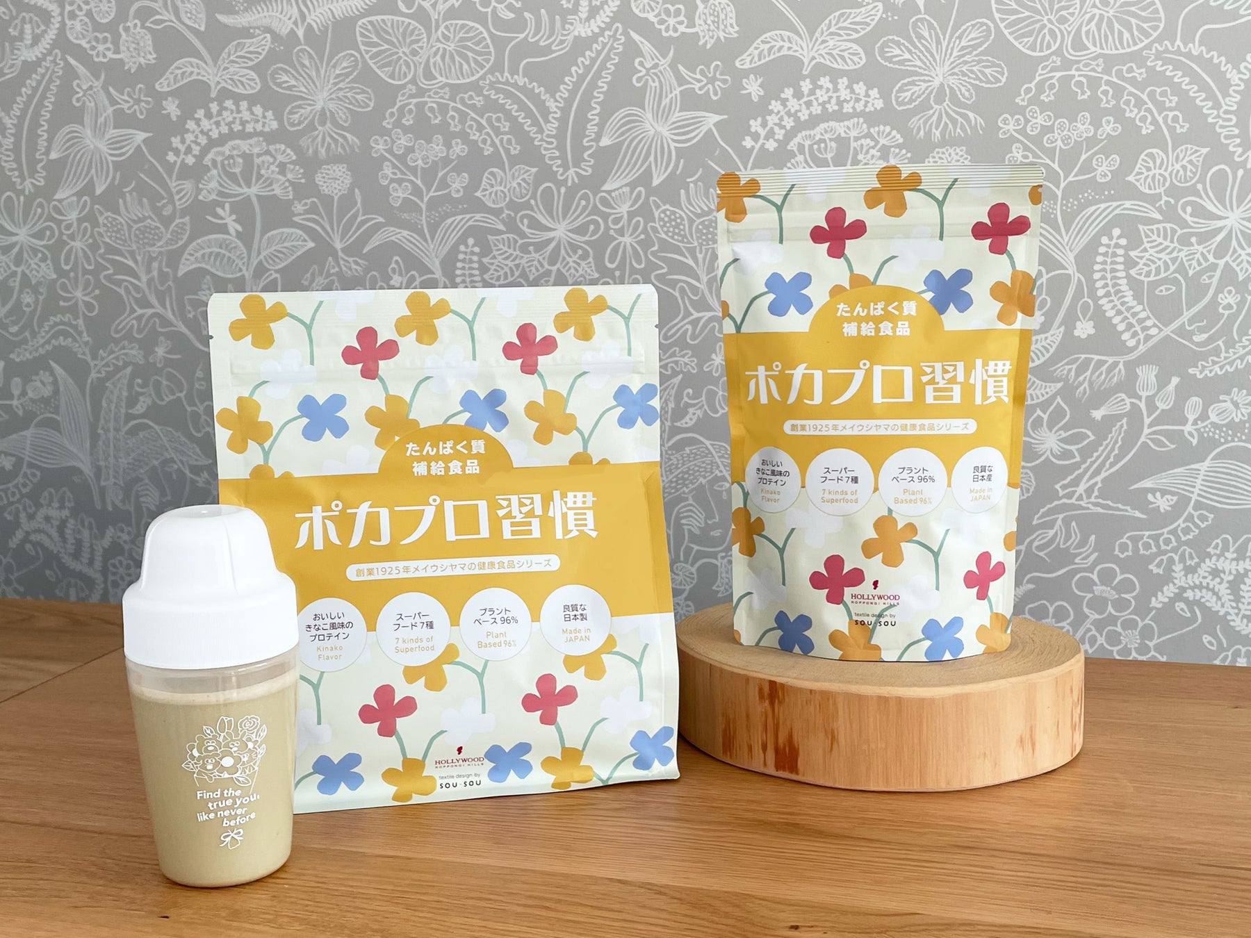 老舗化粧品メーカーならではの視点でつくられた、老若男女問わず年を重ねた方の健やかで若々しい体のための健康プロテイン。グルテンフリー、人工香料、白砂糖不使用にこだわった、健康食品で半世紀の歴史があるメイ・ウシヤマの健康食品シリーズです。美味しさにもこだわったきな粉風味で飲みやすく、アレンジもしやすいので毎日の習慣にぴったりです。
