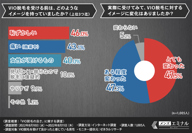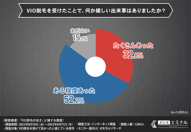 そこで今回、メンズ医療脱毛クリニック『メンズエミナル』(https://mens-eminal.jp/lp/?refmedia=31073)は、VIO脱毛を受けて良かったと感じている男性を対象に、「VIO脱毛の良さ」に関する調査を実施しました。
