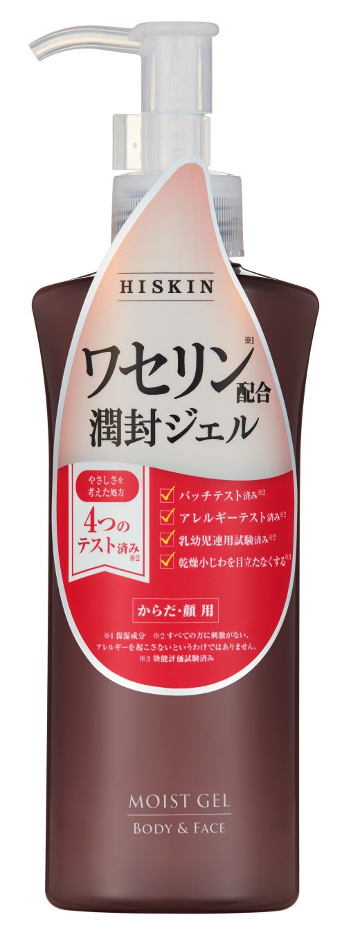 厳選したワセリン※1を高配合し、1本でからだ・顔に使えるハイスキン モイストジェルが