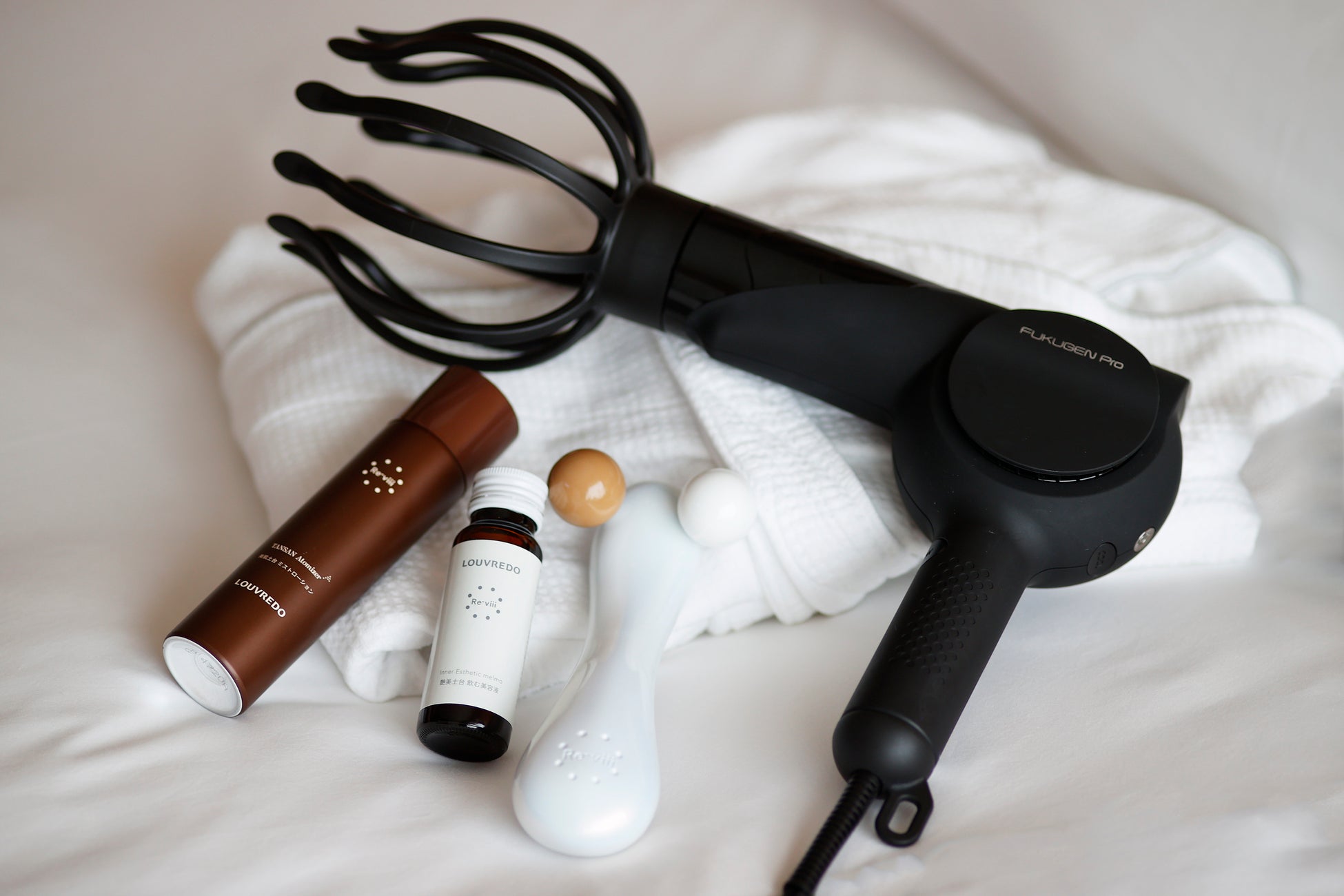 ・「LOUVREDO」アメニティ:復元ドライヤーPro、ソフィルe-ホワイト(マッサージローラー)、