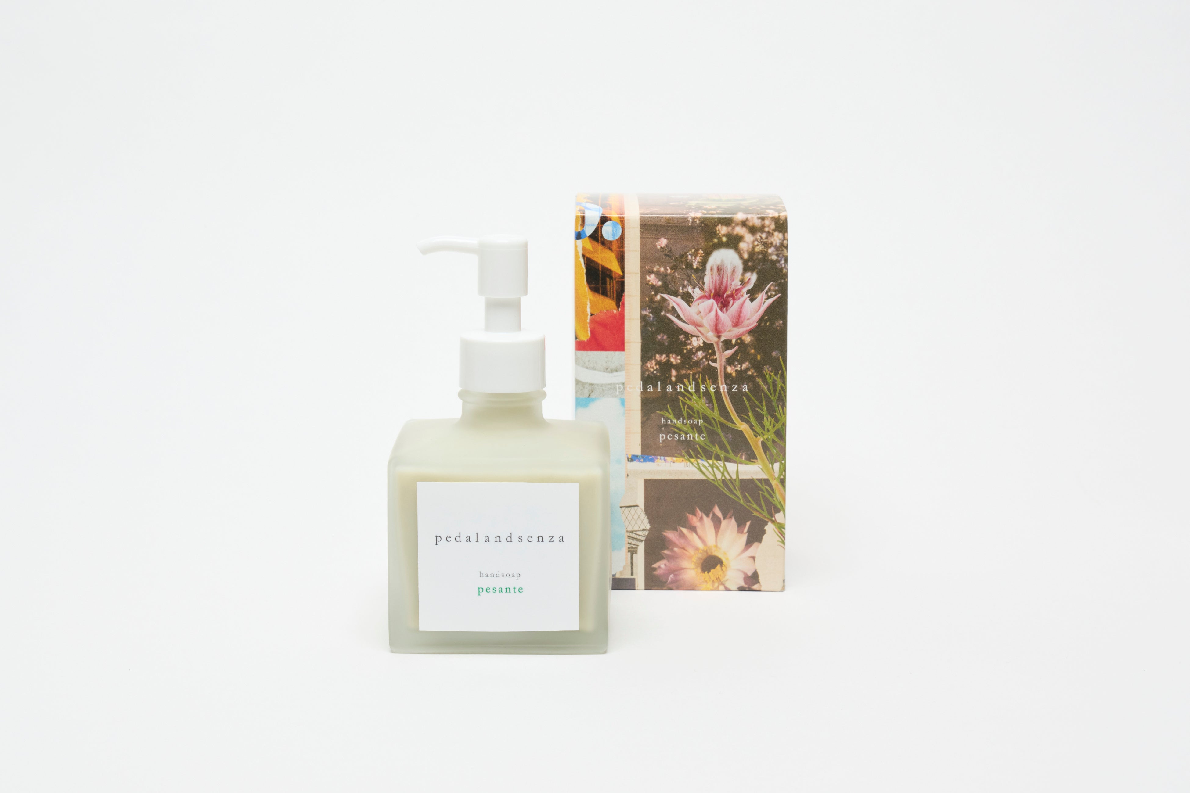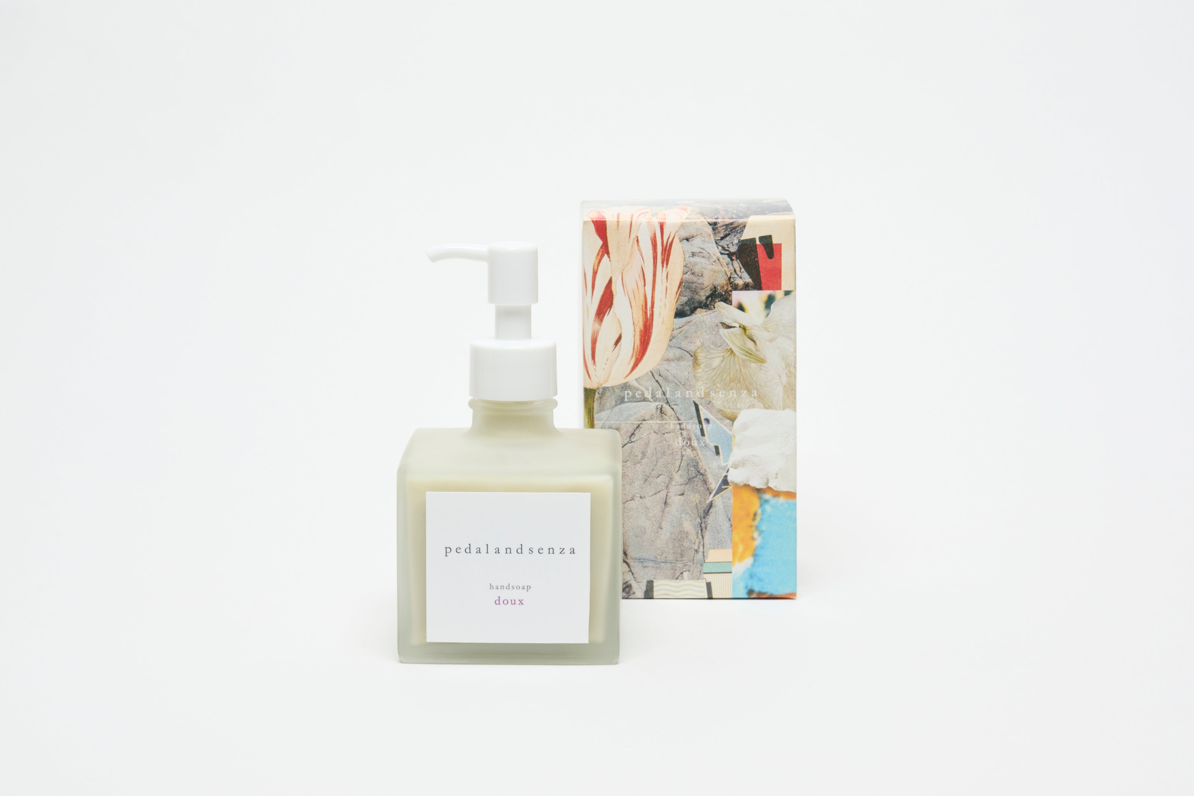 「Pedal & Senza(ペダル アンド センツァ)」は、ミネラル成分である稀少な国産の粘土「モンモリロナイト」を主成分として、香り豊かな植物を組み合わせ、肌と気持ちに新鮮な体験を届ける天然由来のコスメです。フラワークリエーター 篠崎恵美 監修による美しい香りと、アートディレクター永戸鉄也が手がけたエコロジー視点のアートワークに包まれたパッケージ。自然の移ろいに寄り添うパフォーマンスで、巡りゆく日常に美しい抑揚をもたらします。デビューコレクションのハンド、ボディケアシリーズは、2種類の香り、doux[ドゥー]とpesante[ペザンテ]を纏った全6アイテムをリリース。