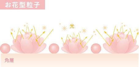 サイズも形もひとつひとつ異なるお花型の粒子が、肌表面の凹凸にフィット。