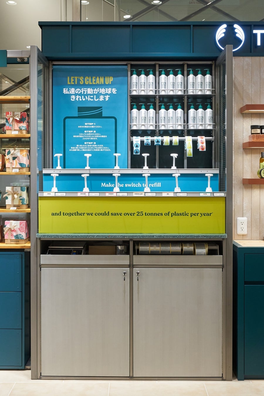 ストアコンセプト「アクティビストワークショップ」は、2019年イギリスのボンドストリートのフラッグシップストアから登場しており、日本国内では有楽町マルイ店を含めて現在19店舗(2022年9月末時点)を展開しています。詰め替えサービス「リフィルステーション」や日本独自の取り組みである引退した東海道新幹線の再生アルミを利用した店舗内装など、真に持続可能なビジネスの実現に向けてエシカルなコンセプトを強化した同店舗では、訪れるお客様に楽しみながらエシカルなお買い物を体験いただけます。