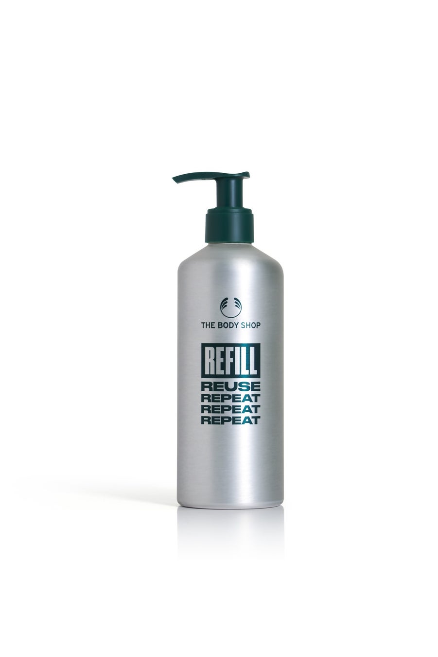 美容製品の消費方法を変え、プラスチック削減の取り組みとして新たな詰め替えサービス「リフィルステーション」を設置しています。ザボディショップでは、まだリフィル(詰め替え)が根付いていない、ブランドが誕生した45年前の1号店で、すでにリフィルサービスを提供していました。現在は、今の時代にフィットする画期的で手に取りやすい形でご利用いただけるスタイルで全世界にて展開していきます。お客さまには専用のアルミボトル(300gサイズ)とポンプをご購入をいただいた上で、人気のボディシャンプー6種(モリンガ、ブリティッシュ