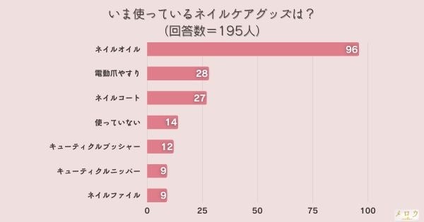 「いま使っているネイルケアグッズは?」とアンケート調査した結果、1位は『ネイルオイル』でした。