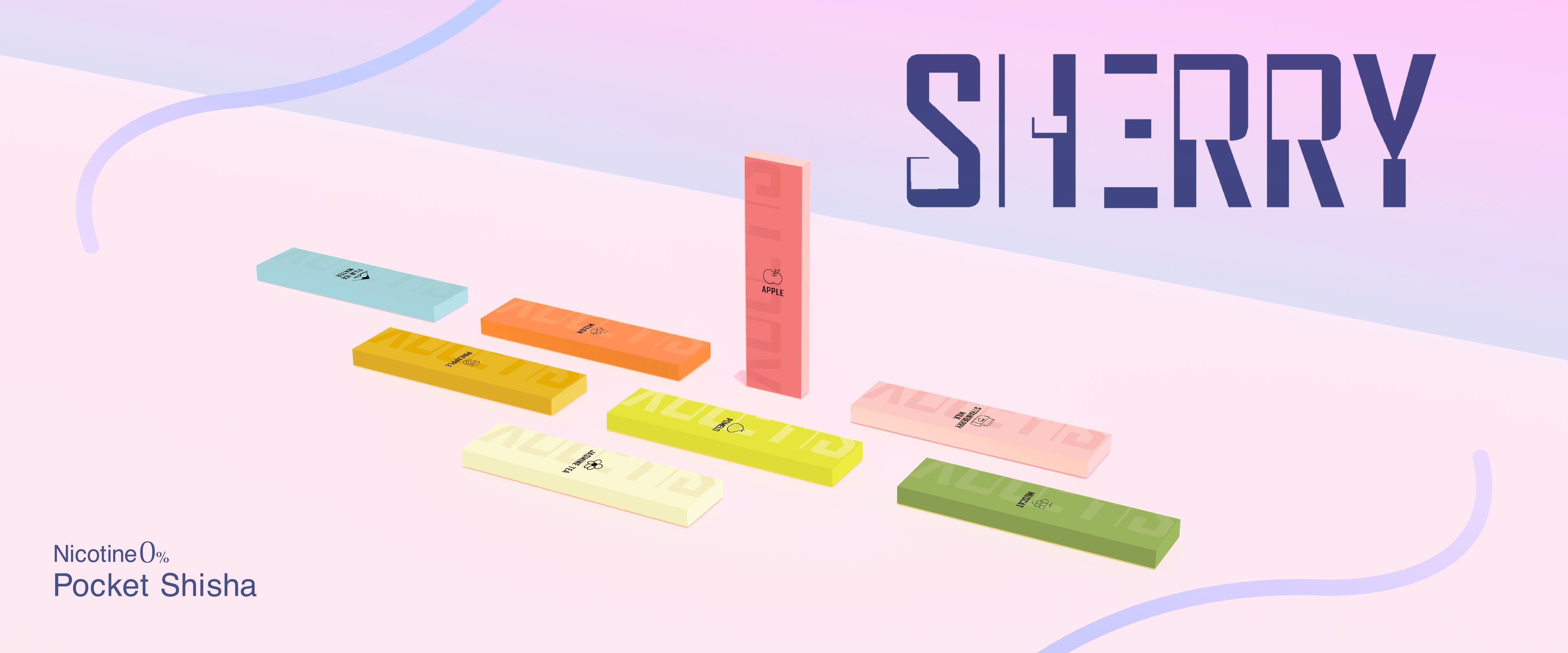 ポケットシーシャSHERRYは「匂いを香りに」をコンセプトとして、ノンニコチン・ノンタール、手軽に持ち運び可能で、17種類の香りを楽しめる次世代チルアイテムです。