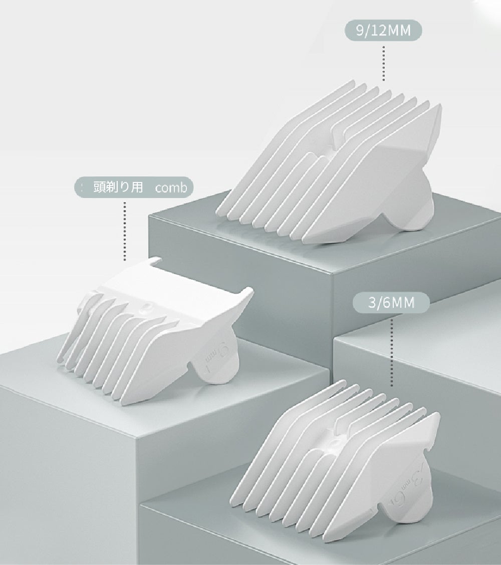 スムーズにヘアカットできるように、各種アタッチメントのカッターヘッドはセラミック製。