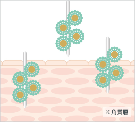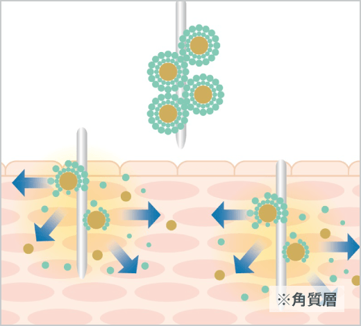 2. 「届ける」 マイクロニードル*7が角質層へ