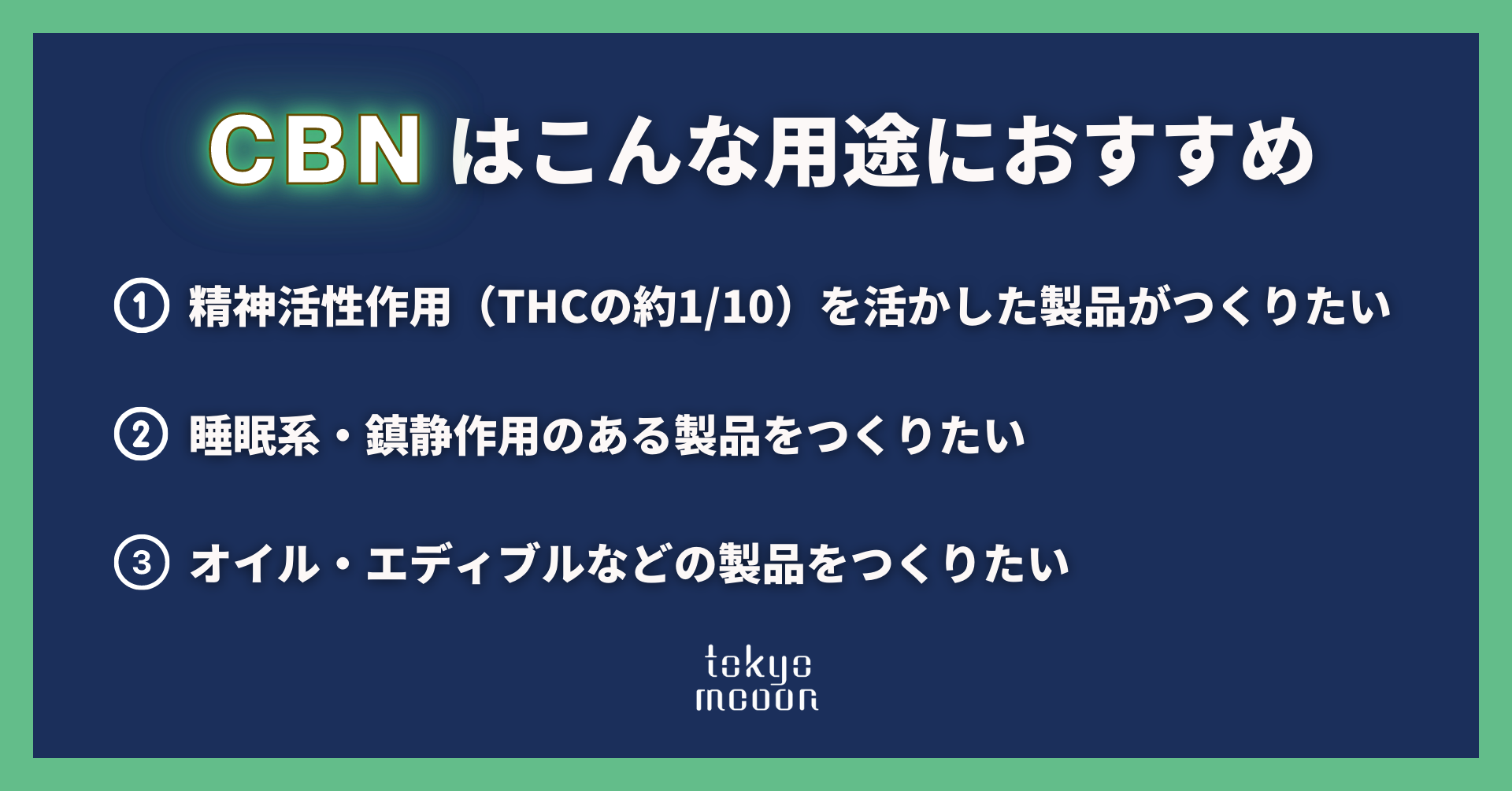今回「tokyo mooon」では9月13日から、7日間限定のCBNアイソレート原料プレゼントキャンペーンを開催します。オイル、ベイプ、グミ、ドリンクなどのCBDブランド立ち上げを行う事業者が増える中、レアカンナビノイドであり、CBDとは異なる効果効能のあるCBNアイソレートにも注目が集まっております。
