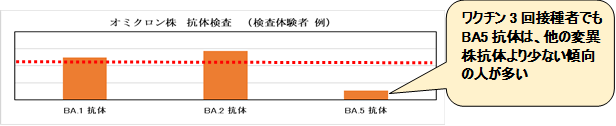 本検査では、オミクロン株BA5、BA2、BA1の3種類の抗体量を調べる検査を行うことができます。