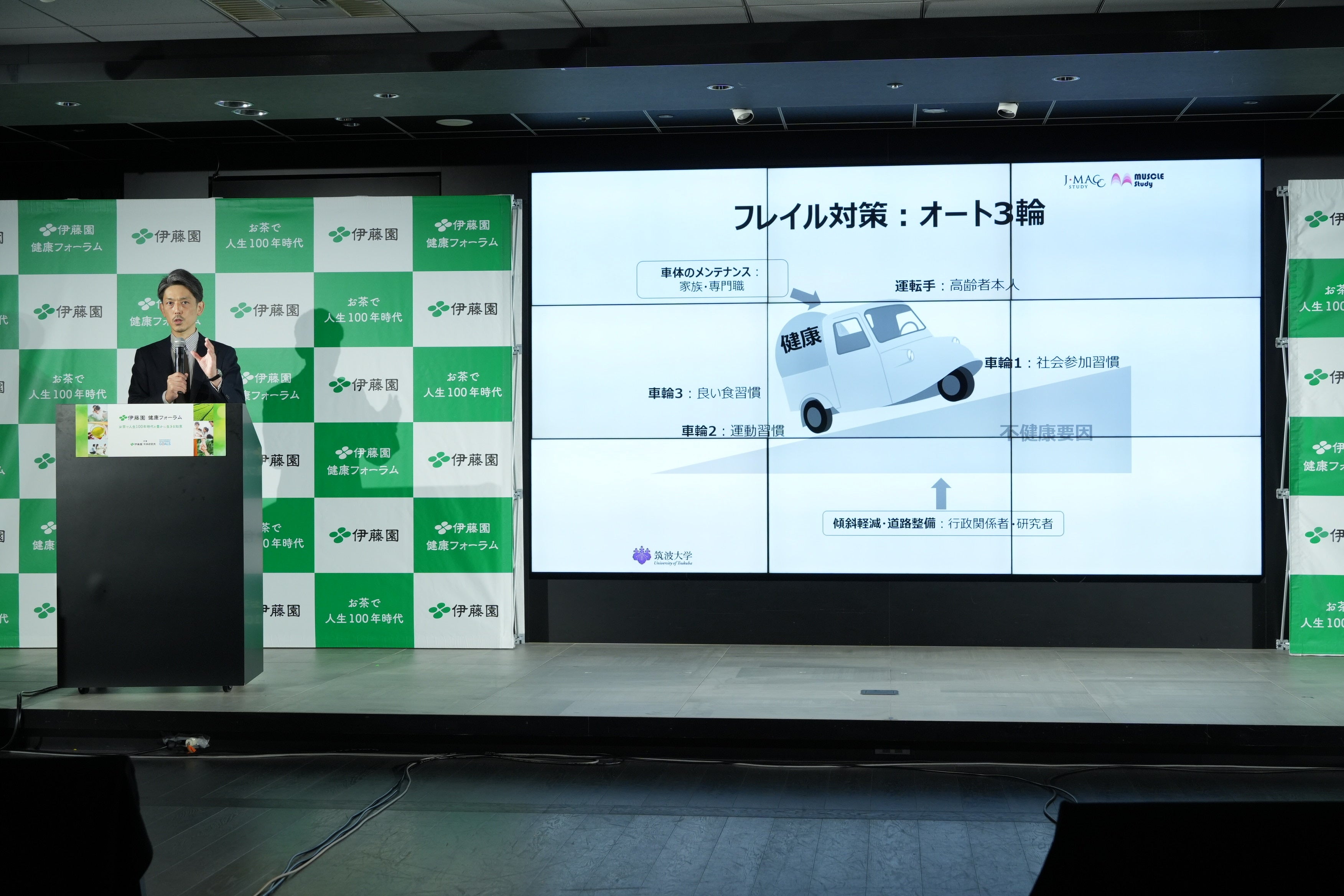 本フォーラムは、「今日からはじめるフレイル予防」をテーマに開催。コロナ禍において「運動」や「社会参加」の機会が減る中、実は若い世代にもフレイル対象者は増加しています。人生100年時代、「フレイル予防」は非常に重要なキーワードで、高齢者だけでなく、若いときから対策は必要とされています。そこで、フレイルに注目し、健康長寿のカギを握るのは何か、お茶がどのように役に立つのかについて、専門家による基調講演、パネルディスカッションを行いました。