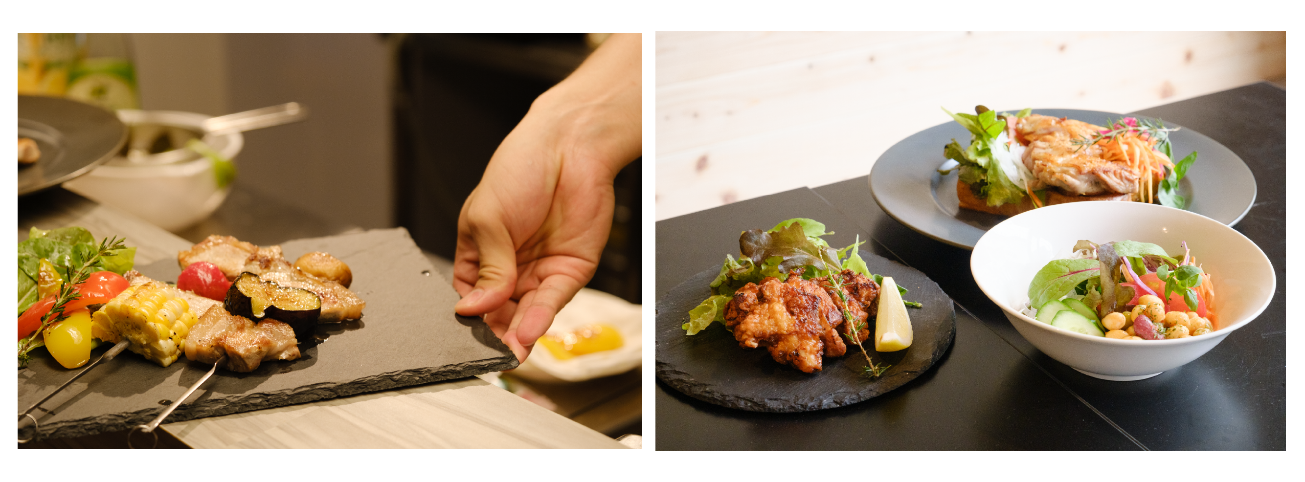 ・フード:鉄板を使用した串焼き、グリルチキントースト、ホルモン焼きなど