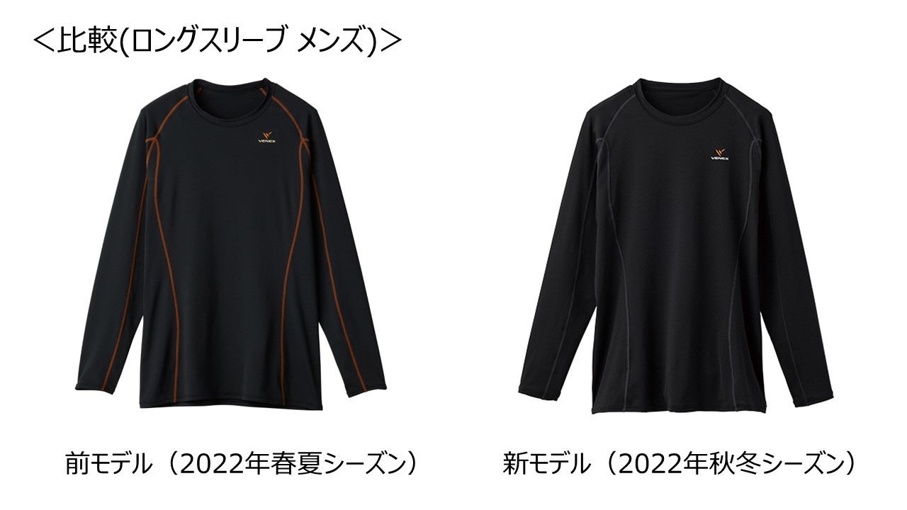 2022年の『RECHARGE+』は、カッティングを際立たせる「ステッチ」がブラックカラーになり「ブラック(ウェア)×ブラック(ステッチ)」が施されることで、よりシンプルかつスタイリッシュな印象のデザインにリニューアル。運動・スポーツ後はもちろん、おうちでの体ケアの時間、移動中など一年を通して着ていただけます。