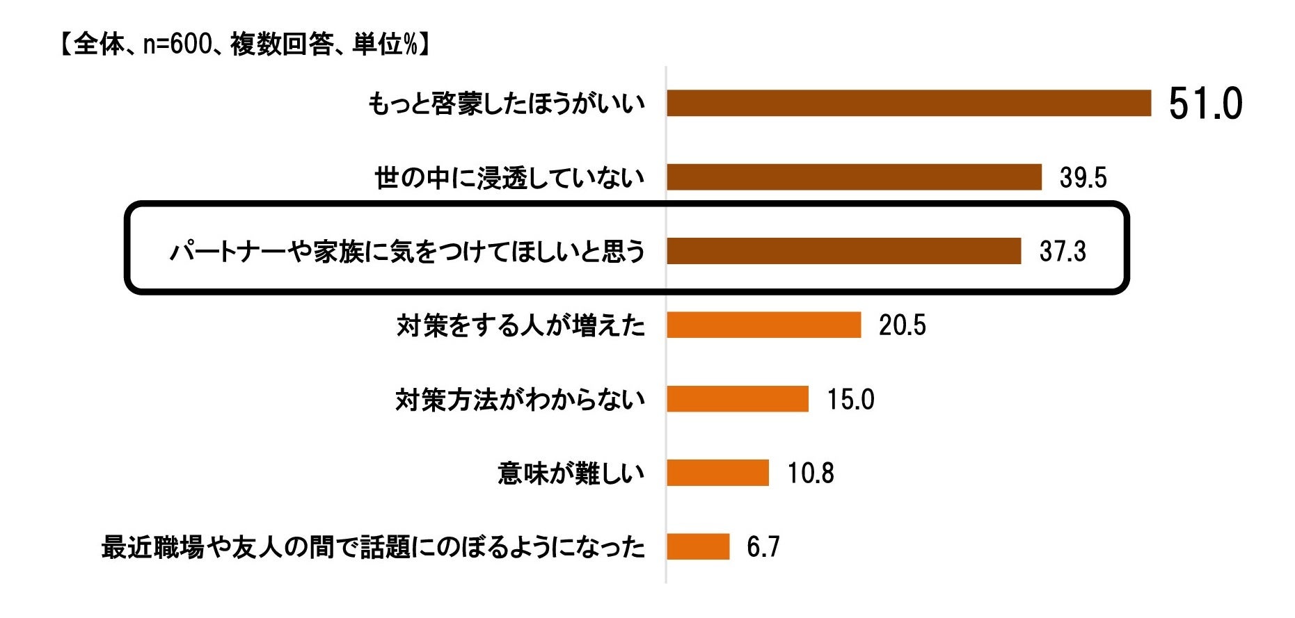 また、3位となった「パートナーや家族に気をつけてほしいと思う」という回答が37.3%と、2018年の調査より6ポイント増となりました。