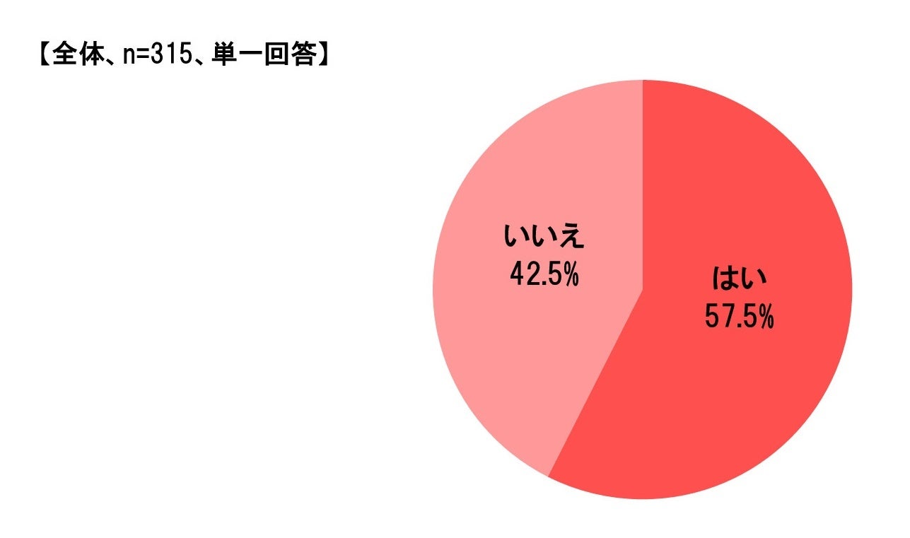 「コロナ禍での新しい生活様式に変わる前に比べて、積極的に『ウォーキング』を取り入れるようになりましたか」と質問したところ、57.5%の方が「はい」と回答しました。