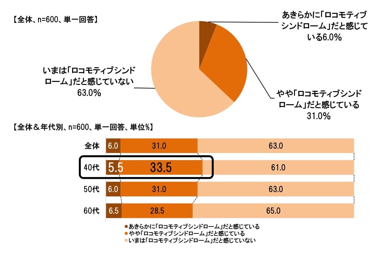 40代は平均40.7歳で、最も早く「ロコモ」を自覚