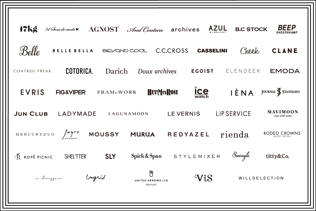 毎回20,000人近くのファッション好き女子たちが来場し、60を超えるレディースファッションブランド、約4万点以上の商品が並ぶ会場でアウトレット商品のショッピングが楽しめます。