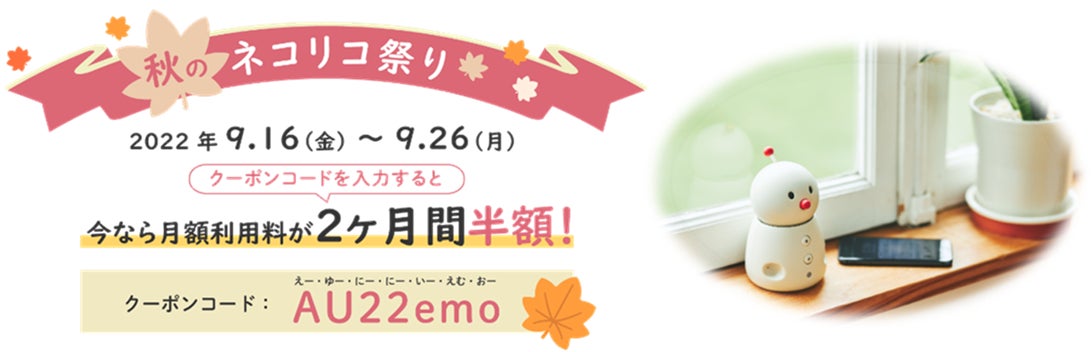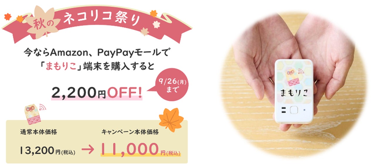 合同会社ネコリコ(本社:東京都千代田区、代表:木全英彰、以下、「ネコリコ」)は、本日から9月26日(月)まで「秋のネコリコ祭り」と題して、「BOCCO emo LTEモデル Powered by ネコリコ」と「まもりこ」のお得なキャンペーンを開催します。