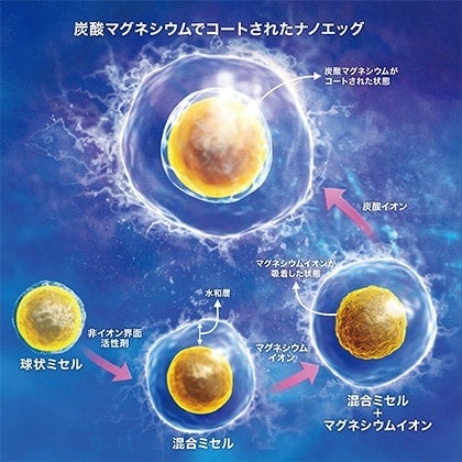 「ナノエッグ」とは、ナノエッグ社が開発した、有用成分を素早く角質内に浸透*1させることを可能にした独自のナノカプセル化技術。
