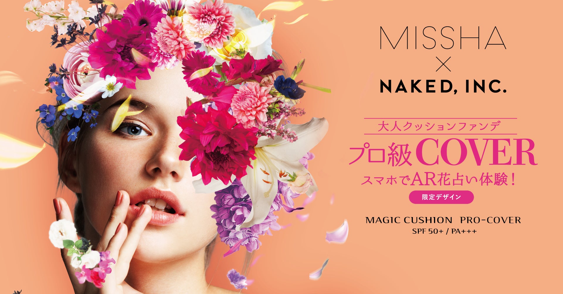 「美しさは誰もが経験することができる」をブランドメッセージに掲げるミシャは、花の美しさを通して毎日のメイクでより生活に彩りを届けたいという想いから、今回「NAKED,INC.」の代表作である「NAKED FLOWERS」とのコラボレーションが実現しました。いつものM クッションファンデーション(プロカバー)が2種類のネイキッドのフラワーアートモチーフのデザインに。