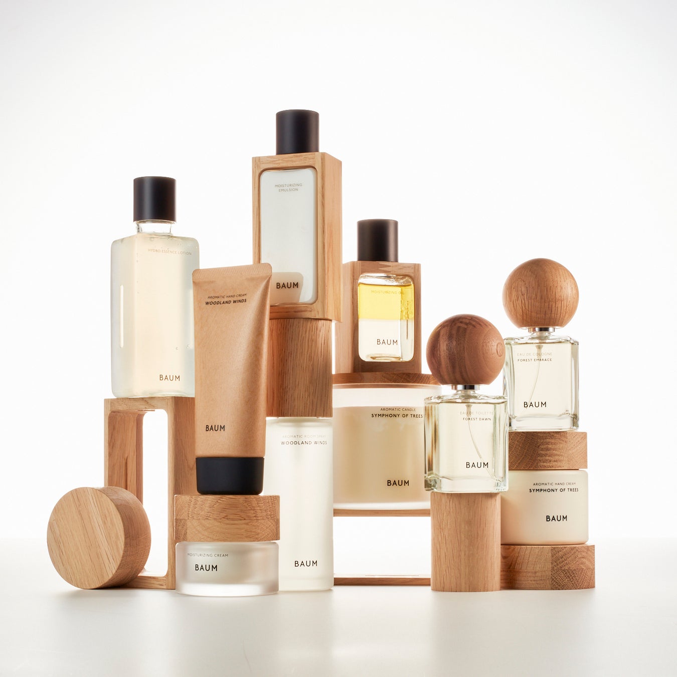 BAUMは「樹木との共生」をテーマに掲げるスキン&マインドケアブランドです。商品のパッケージに家具の製造工程で発生した小さい木材を再生利用しており、木材の産地である東北や北海道地方への植樹活動を行っています。樹木の恵みを受け取り、未来へつなぐ活動を通じ新たな豊かさを提案します。