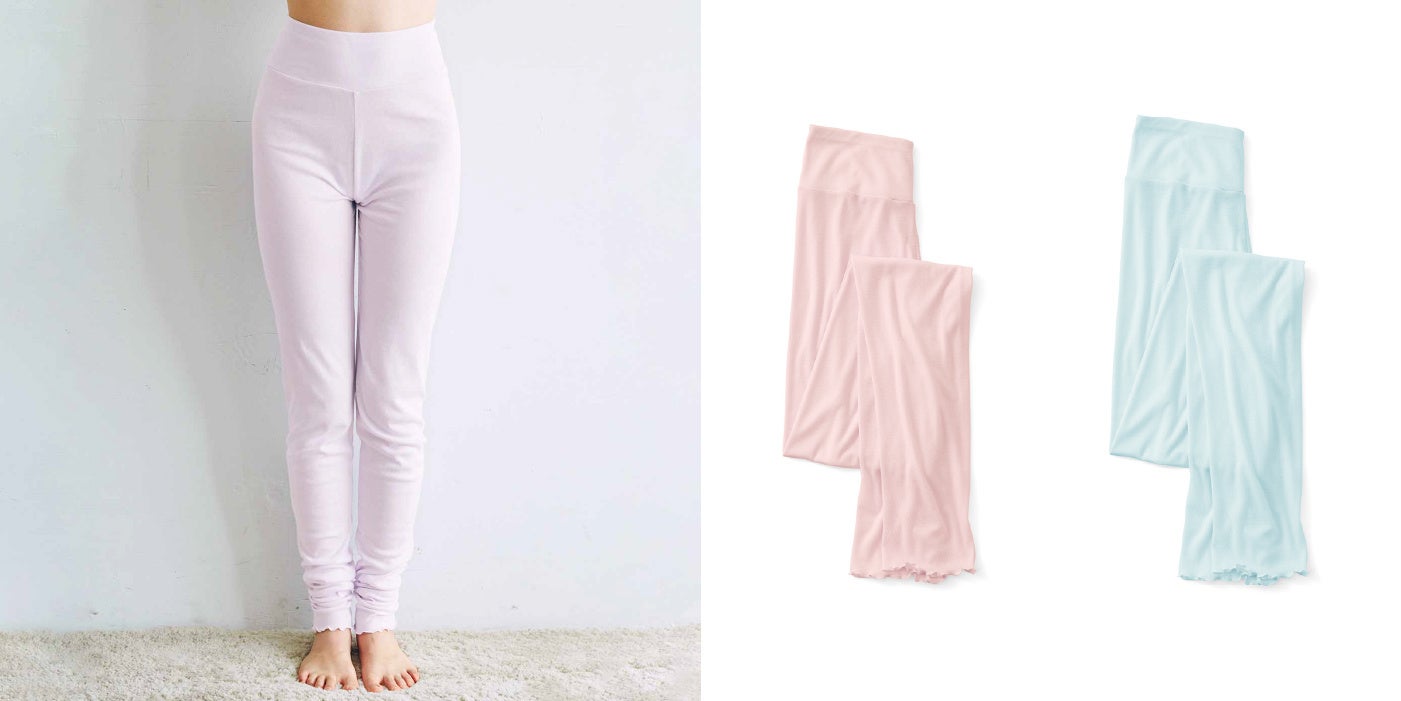 アルガンオイル加工を施した生地の十二分丈のレギンスです。足先近くまで隠れる十二分丈は、就寝時は足の冷え対策にもなります。足首にたわませると、素敵に履きこなせます。