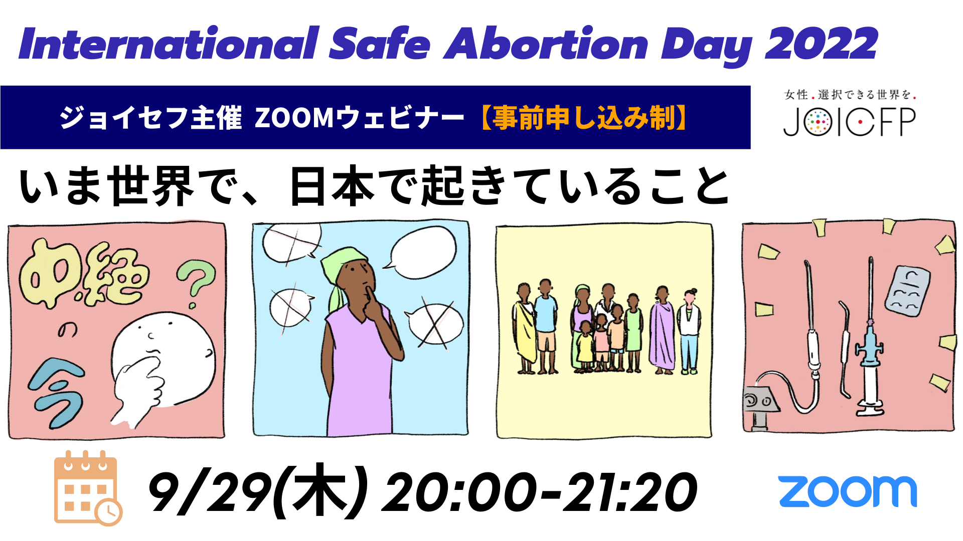 国際セーフアボーションデー(9月28日)に際し、公益財団法人ジョイセフは、いま世界と日本で起きていることを正しく知るためのオンラインウェビナーを9月29日(木)に開催します。