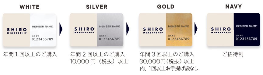 SHIRO 店舗もしくはオンラインストアでのご購入内容に応じて、会員ステージを付与させていただきます。