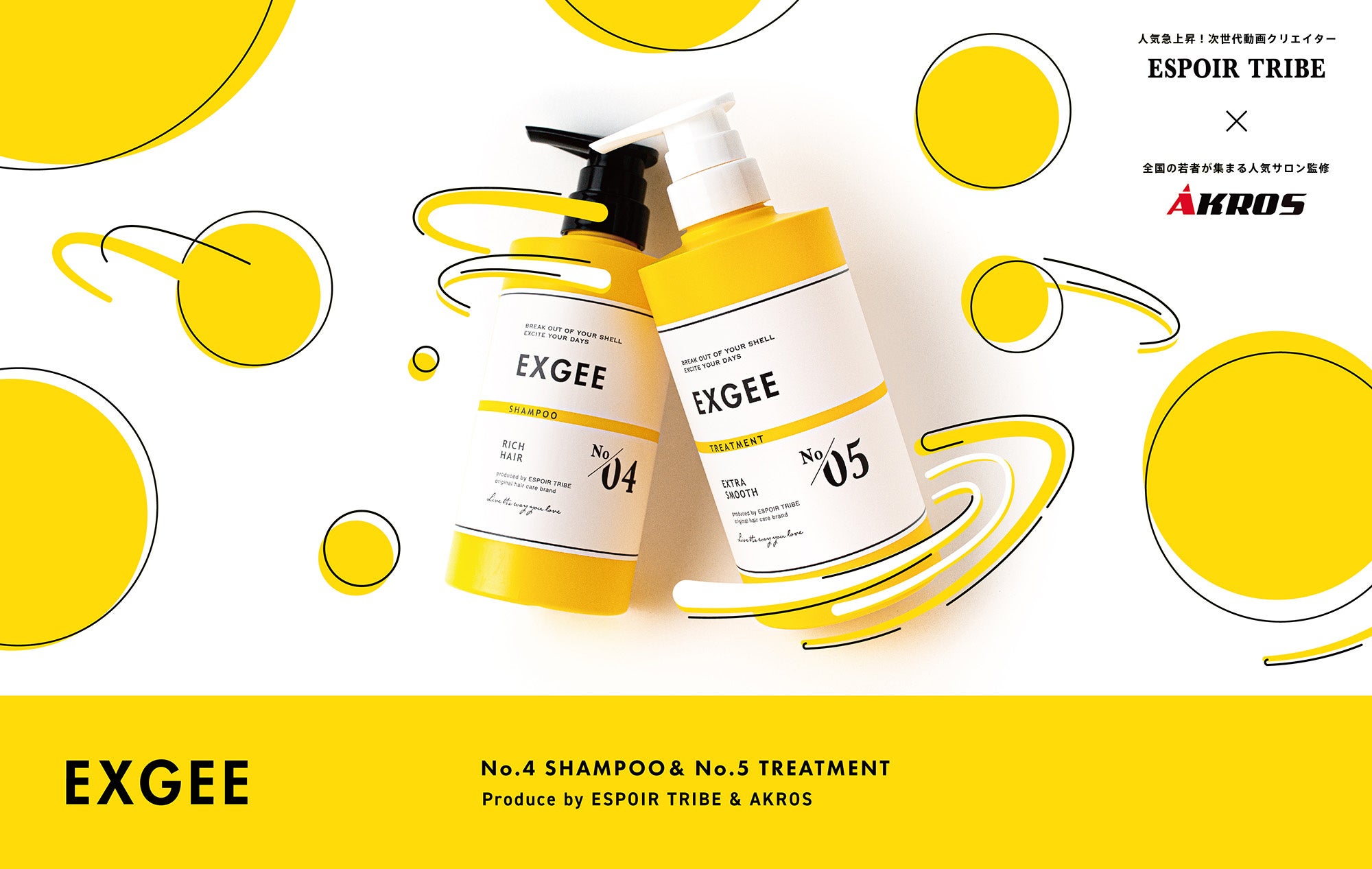 10代後半から20代の男性を中心に人気を集めている現在人気急上昇中の5人組動画クリエイター「ESPOIR TRIBE-エスポワール•トライブ-」(以下、ESPOIR TRIBE)プロデュースのヘアケアブランド「EXGEE(エグジー)」より、新商品シャンプー・トリートメントの発売が決定いたしました。