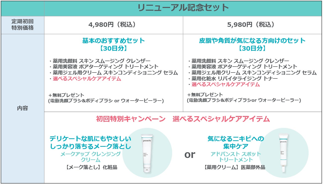 リニューアル新発売のキャンペーンといたしまして、11月14日まで、『選べるスペシャルケアアイテム』がセットになったリニューアル記念セットを販売いたします。公式ページhttps://proactiv.jpにてご確認ください。
