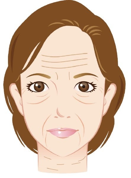 肌がたるみやすくなり、皮膚が寄ることでシワになる。