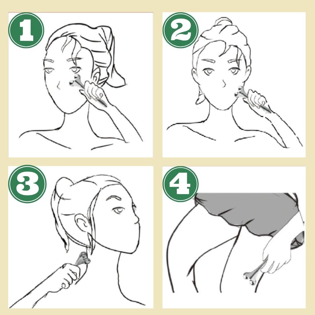 顔だけでなく腕や足もマッサージできるローラー。70度の角度とダイヤモンドカットの形状で効果的にマッサージをおこなえます。また、持ちて部分を【かっさ】としてもお使いいただけます。