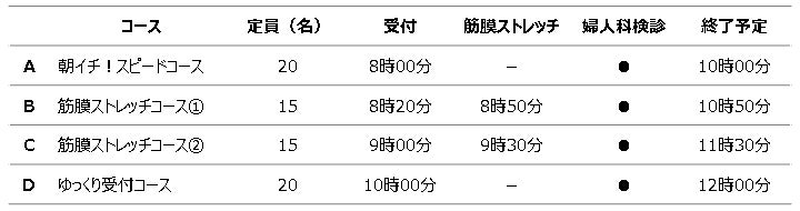 4つのコースをご用意し、検診スタッフは医師を含めすべて女性が担当します。