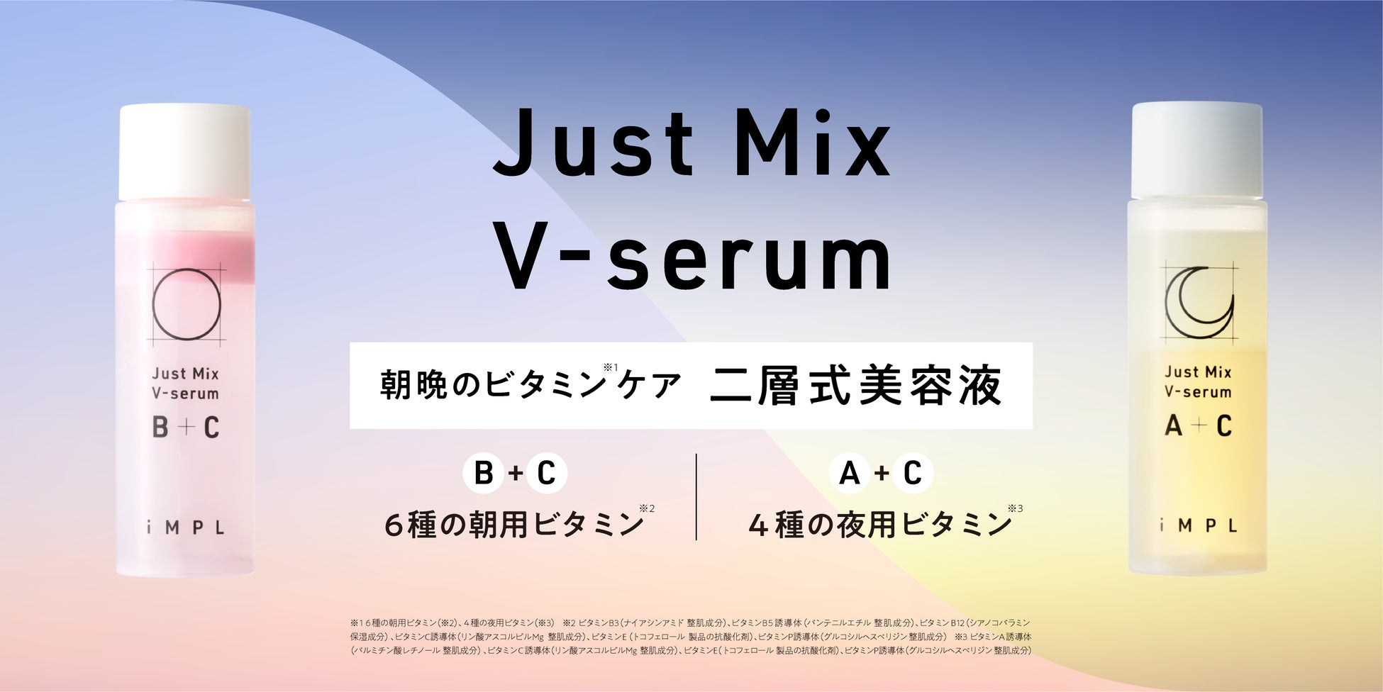 「iMPL Just(ジャスト) Mix(ミックス) V-serum(ブイ-セラム) B+C」「iMPL Just(ジャスト) Mix(ミックス) V-serum(ブイ-セラムセラム) A+C」10/3(月)新発売