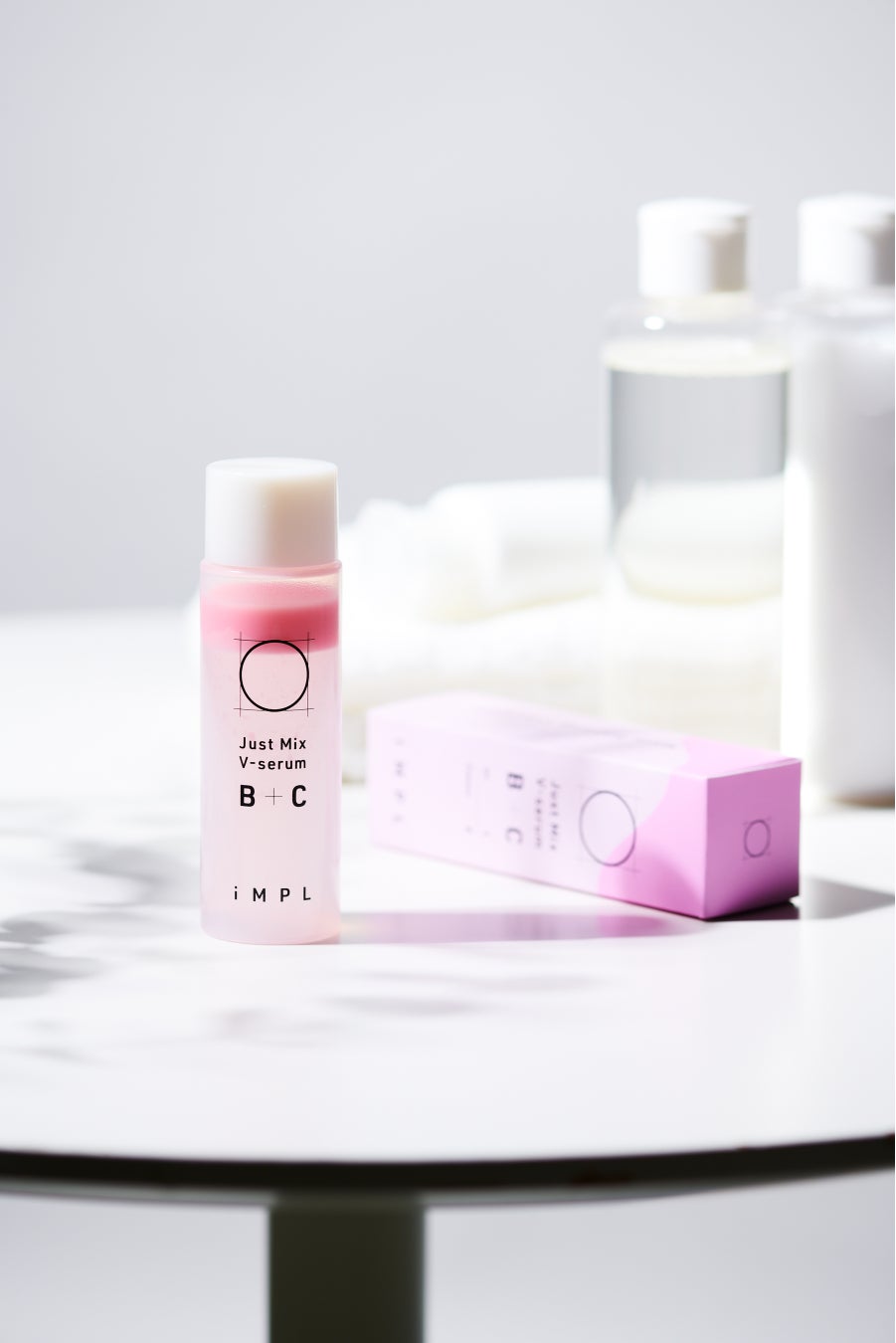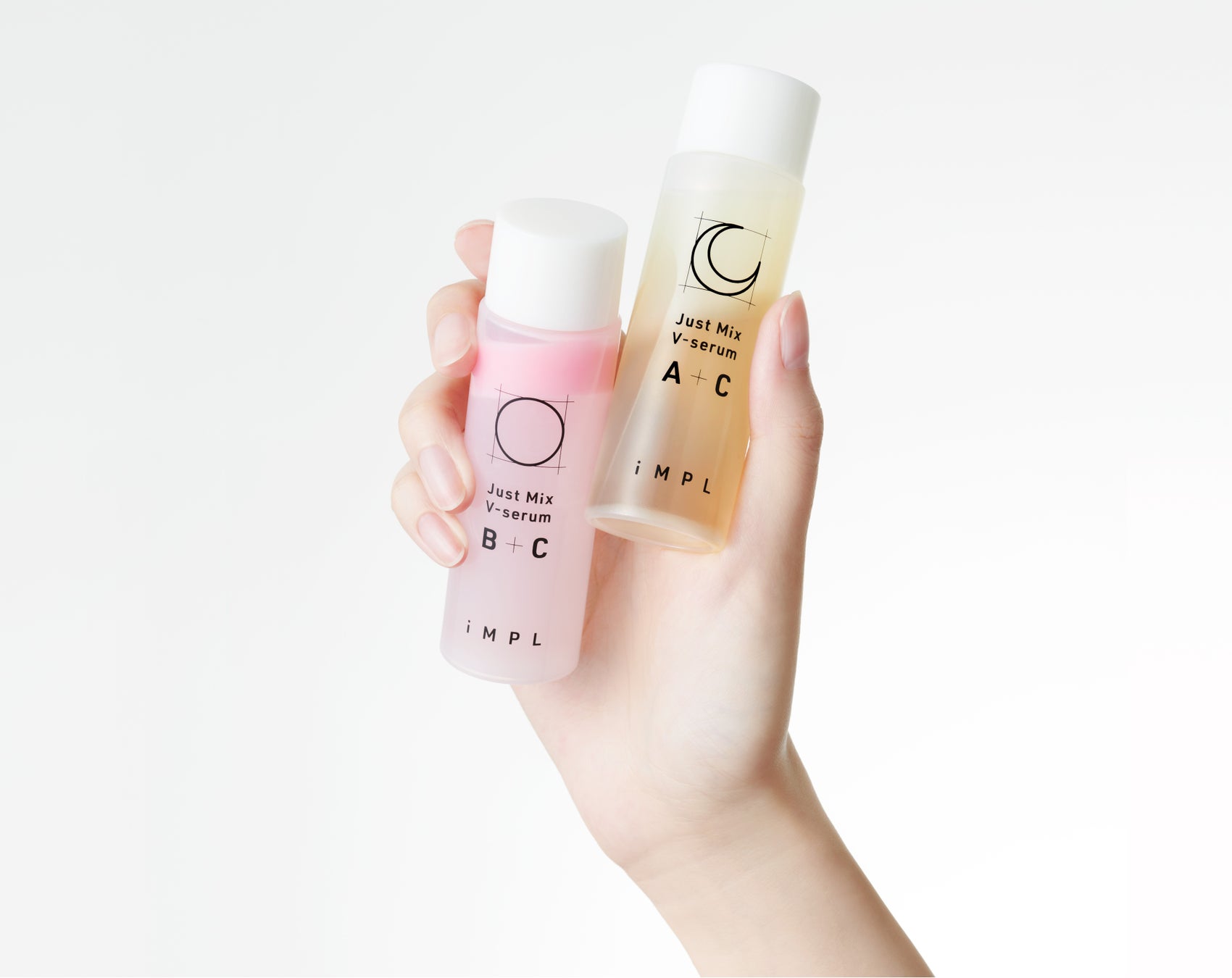 そして、今回「iMPL」では、第2弾として新たにデイリーケア向けの二層式美容液を発売。毎日のお手入れのための、朝用美容液「iMPL Just Mix V-serum B+C」と夜用美容液「iMPL Just Mix V-serum A+C」の2種類を展開します。