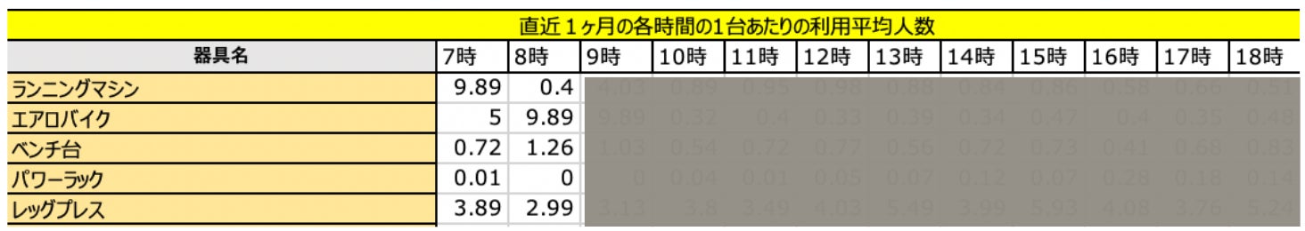 営業時間内の時間ごとに、どのようなマシンがよく利用されているか把握できるようになります。