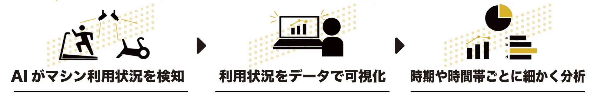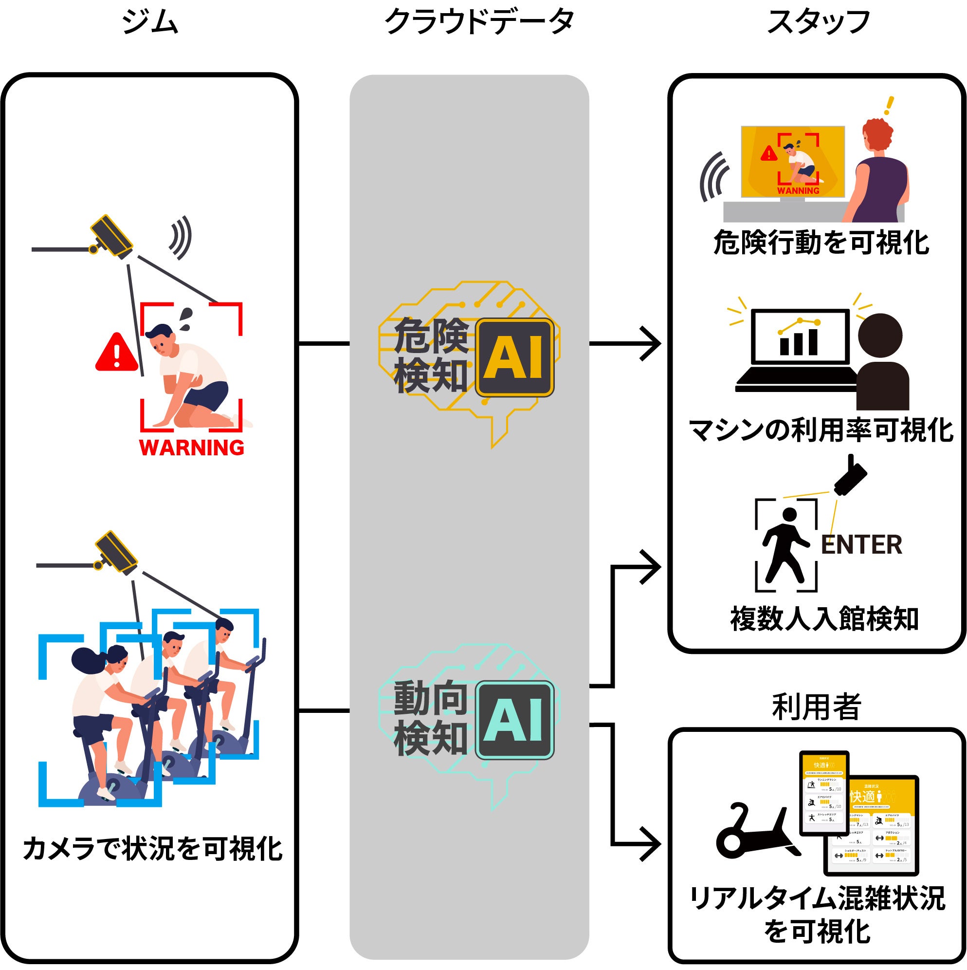 ジム内に専用カメラを設置し、ジム運営をAI化するDXサービスです。