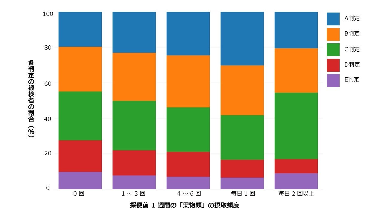 3 . 「果物類」の摂取頻度が高いと腸内フローラ判定が良い傾向に
