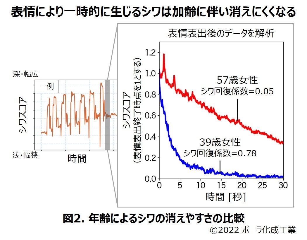 ポーラ・オルビスグループの研究・開発・生産を担うポーラ化成工業株式会社(本社:神奈川県横浜市、社長:釘丸和也)は、表情の動きに伴うシワの変化を定量化する評価法を開発しました。本評価法にて、表情によって一時的に生じるシワが加齢に伴い消えにくくなることが分かりました※1。本技術は今後、ポーラ・オルビスグループの商品・サービスに活用されます。