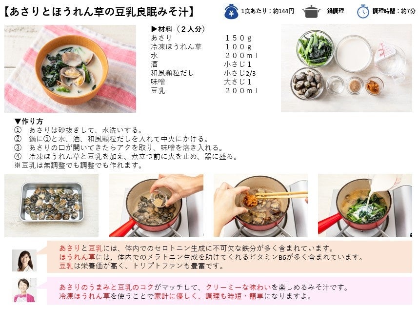 - 医師、管理栄養士、料理研究家監修、「良眠みそ汁」レシピを6品大公開。