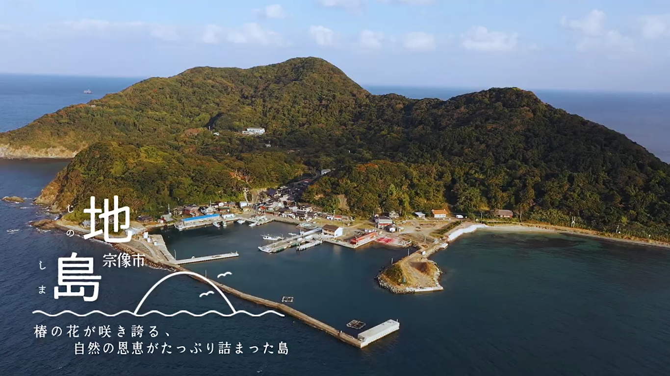 地島は玄界灘と響灘の境界部に面する、周囲9.3km、人口約140人の小さな島。泊地区と豊岡地区の2つの集落があり、皇室献上のわかめをはじめとした、ウニ、アワビなどの磯漁業・釣漁業が盛んです。島内には約6,000本のヤブ椿が自生するなど自然が豊かな地域です。