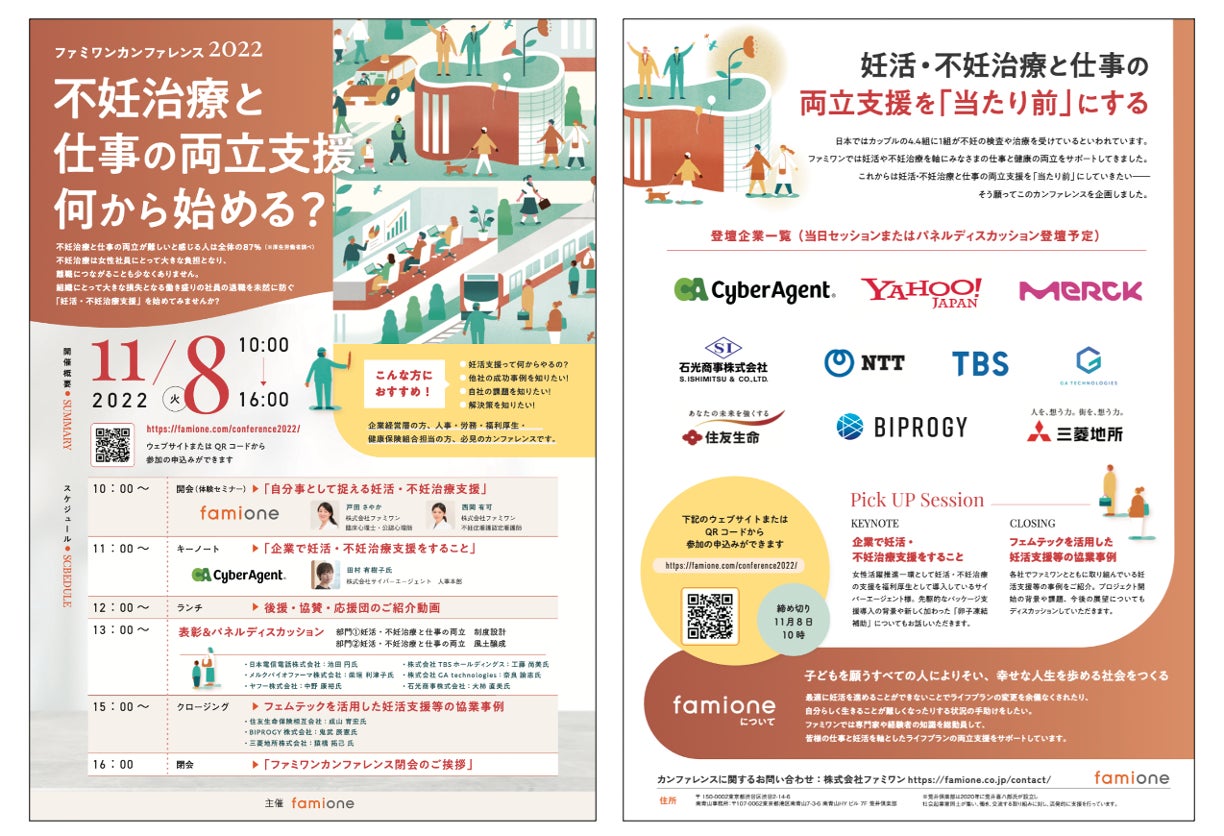 妊活・不妊治療と仕事の両立をテーマとした「ファミワンカンファレンス 2022」を、人事部や経営層向けに11月8日にオンラインで開催します