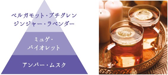 ベルガモットとラベンダーが香るハーブティーをベースに調合した「ナイトドリームティーの香り」でリラックス。バスタイムからベッドタイムまで上質でやさしい香りに包まれ、心地よいナイトタイムを演出してくれます。
