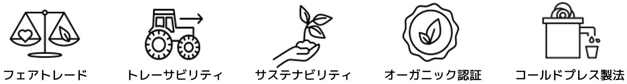 オイル本来の美容成分を引き立てるために、丁寧にコールドプレス製法で抽出したオイル。フェアトレード・トレーサビリティ・サスティナビリティの厳しい基準をクリアしたオーガニック認証の世界中から厳選された天然オイルで作りました。