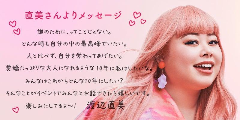 イベント当日は、渡辺直美さんと参加者だけの秘密話やゲームなど楽しいコンテンツをご用意しています。さらに参加者から2名様限定で渡辺直美さんと画面越しでお話できる時間も設けており、10周年の感謝を込めてお客様の夢を叶えます。ぜひご応募お待ちしております。