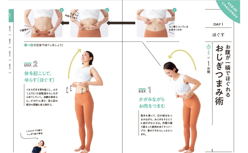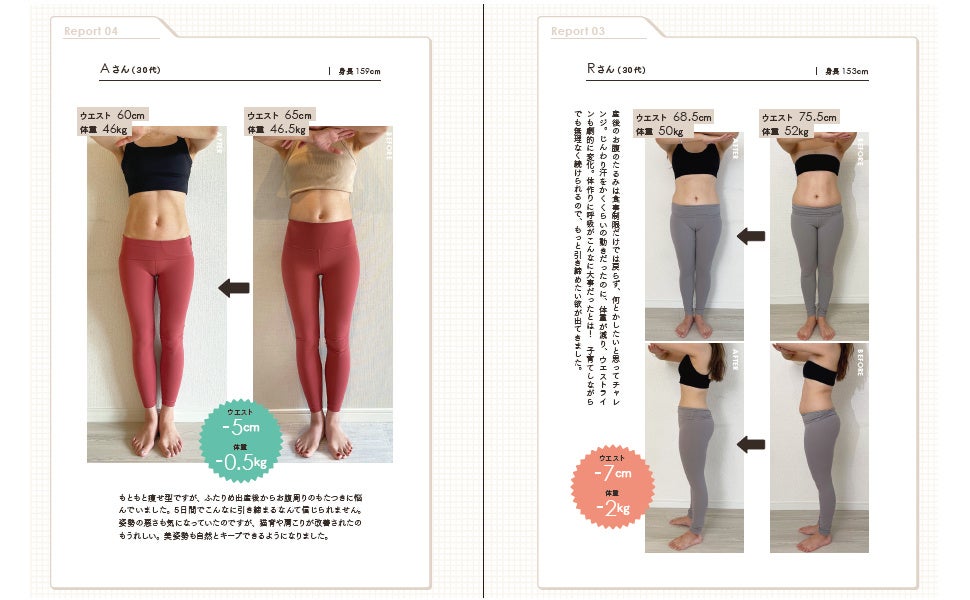 「ほぐす+のばす+鍛える」の3ステップで、誰でも簡単に、食事制限なしで、キュッと引き締まったくびれをつくるプログラムを紹介。実際にプログラムに参加されたモニターさんは皆、ウエストが引き締まり、たった5日で−7cmもサイズダウンした方も!見た目だけでなく、心身のさまざまな不調改善にも役立つ、このプログラムにレッツチャレンジ!