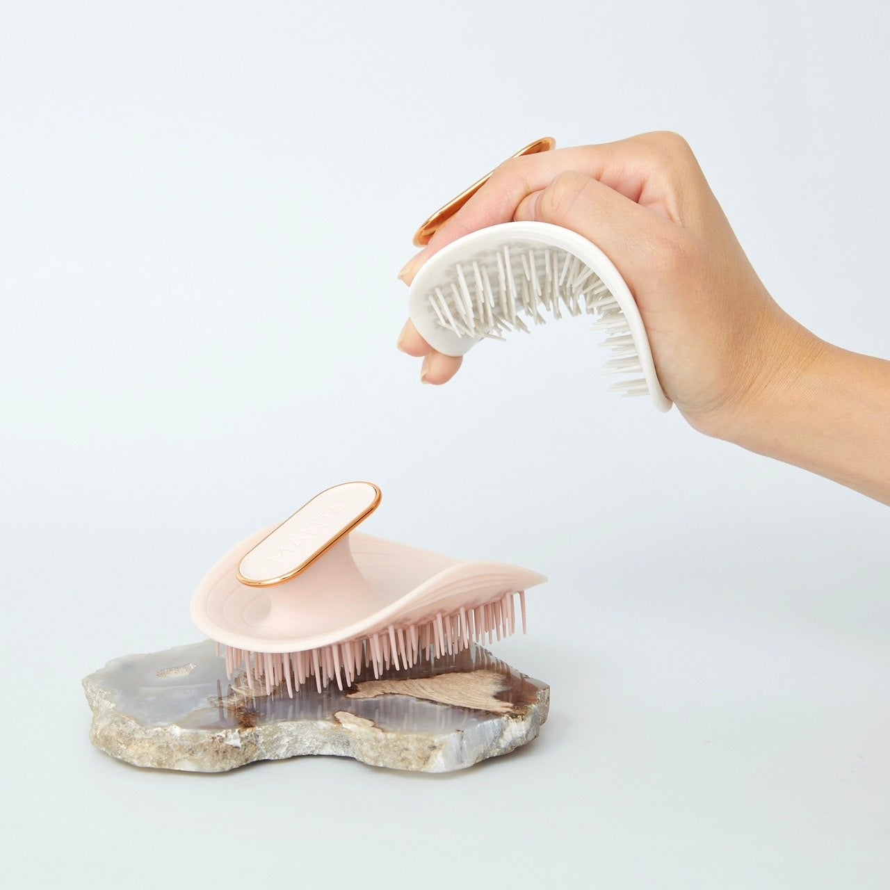 その姿を目にしたTimは「髪と頭皮のスカルプケアは大事。ただ彼女にはもっと優しく、効率よくケアできるブラシが必要だ」と思い立ち、開発と試作に5年の歳月をかけたのがこのMANTAのはじまりです。