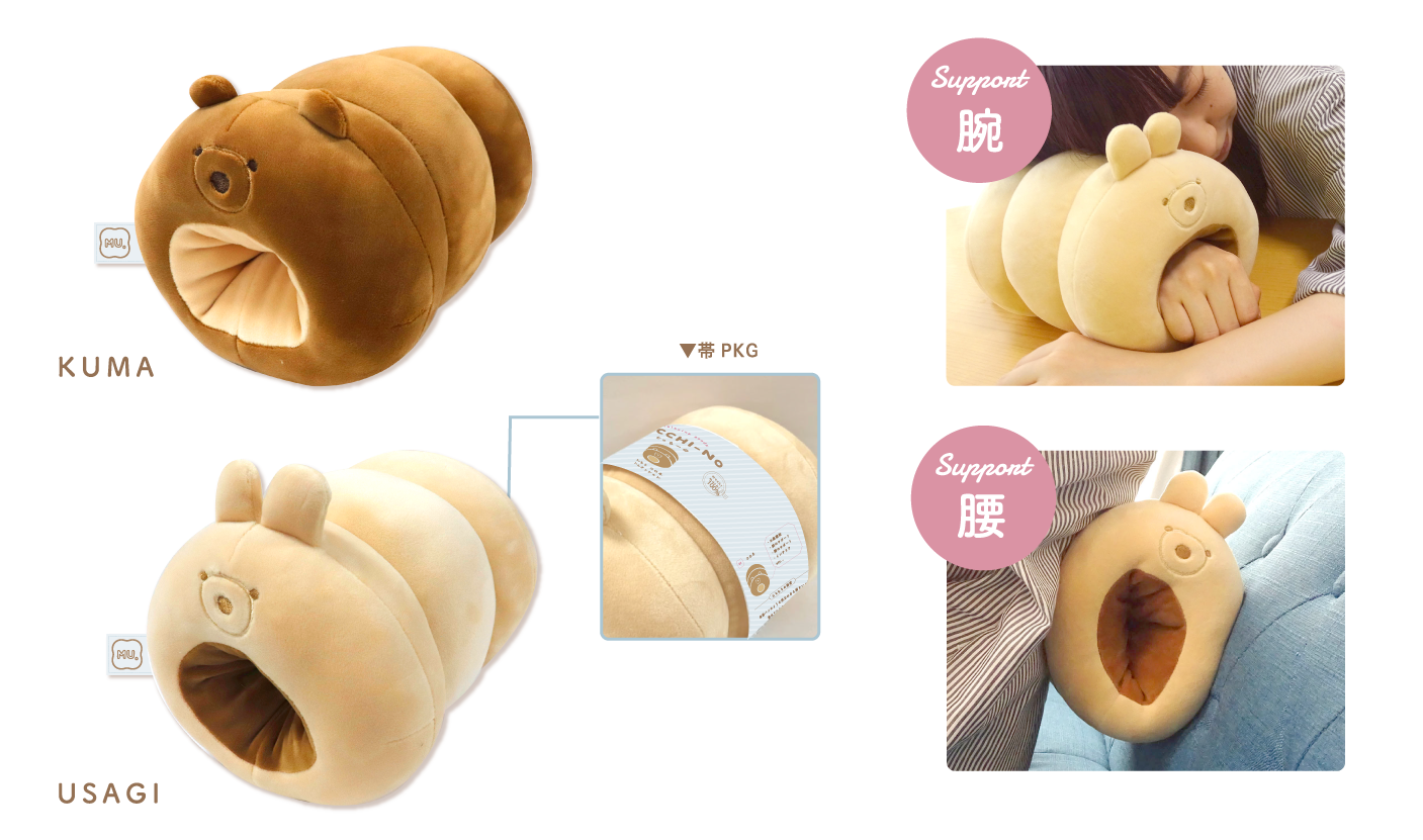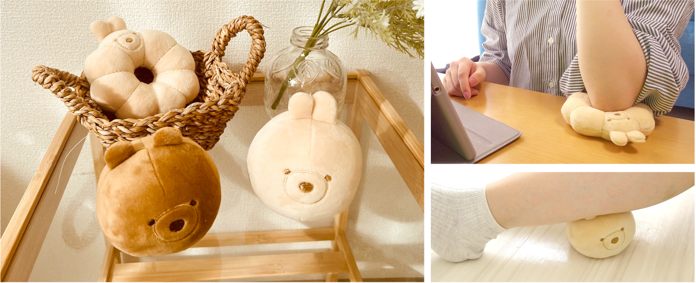 お昼寝用の枕や腰当てにも使える。使い方で顔の形が変わるのがポイント!