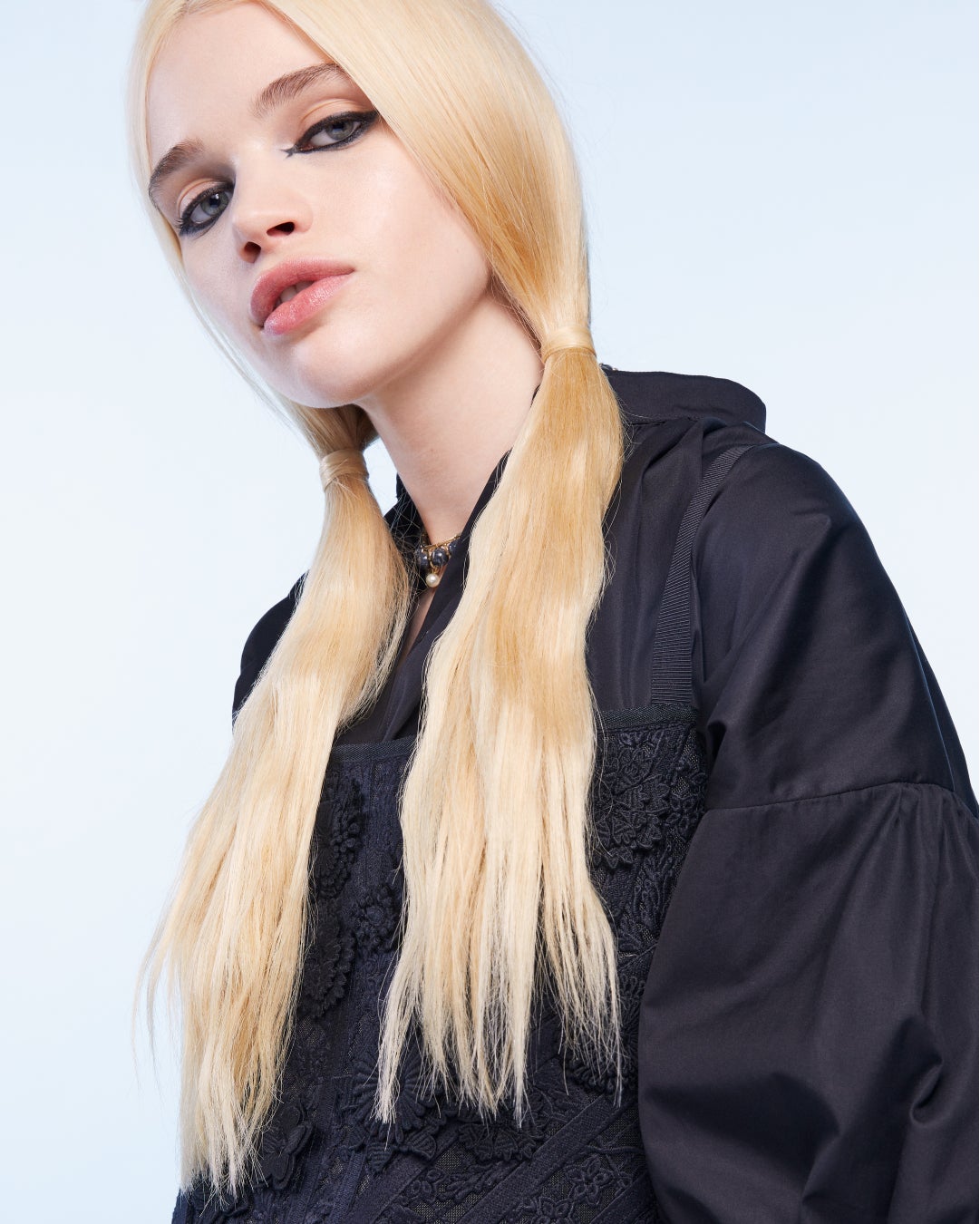 「まぶたの内側で交差する2本のラインで目元を強調し、パンクでシックなアクセントのルックを作りました」